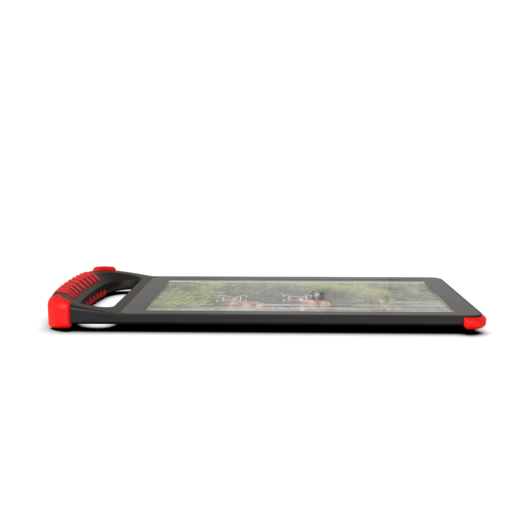 Rugged grips and bumpers help to protect the device, that can be easily transported and held with a handle.